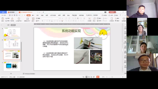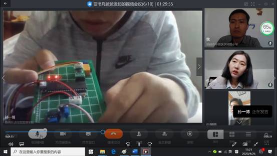 网络答辩过程,采用钉钉视频会议的方式进行,每次让一名毕业生加入会议,参加答辩的员工结合自己的答辩PPT依次进行自我介绍、毕业论文自述、查重报告展示、硬件运行演示等环节,答辩组老师进行提问,考察员工对自己论文内容的熟悉程度、以及在实际应用中的见解、回答问题的角度等,并对论文中存在的问题给予指导。员工离开会议后,答辩组老师对员工的论文及答辩情况进行讨论,确定员工的答辩分数。整个过程进展的有条不紊,井然有序,并进行全程录屏,画面清晰。太阳成集团tyc122cc白鑫经理、教学秘书赵会燕对整个网络答辩过程进行了旁听,白经理就答辩中的具体细节进行了指导。