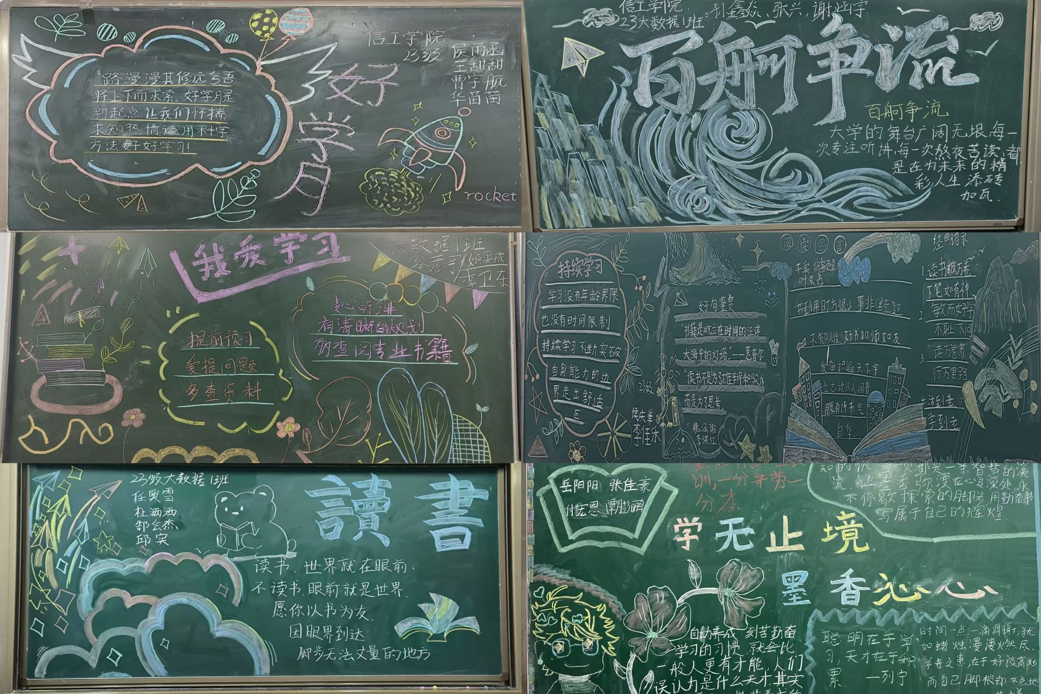 以班级为单位,围绕“好学月”主题纵情挥洒创意,各展神通。同学们巧妙将学风培育、学习窍门、励志金句融入板报创作。从版面设计到文案雕琢,全员齐心,各施所长。擅绘画者勾勒精美图案,书写隽秀者雕琢文案,组织能手协调分工。经层层筛选评定,5 个班级凭借匠心独运的精品板报脱颖而出,荣膺“最佳板报班级”殊荣。这些板报不仅扮靓教室环境,更营造出浓郁学习气场,化为学院独特的文化标识。