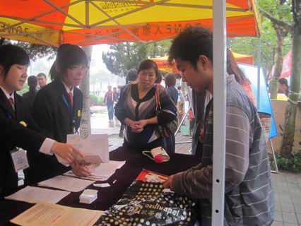 9月15日,持续了多日的连绵秋雨终于停了下来,天空露出了笑脸,阵阵桂香在校园中弥漫。在这特殊的一天里,全院迎来了2011级新生报到的高潮。为此,资讯系团委员工会全体成员着装整齐,分工明确,在我系行政秘书陈刚老师的带领下,早上7:00就在行政楼前、思源会馆西门、体育馆等地设好接待点,随时准备为新生提供细致热情的服务。