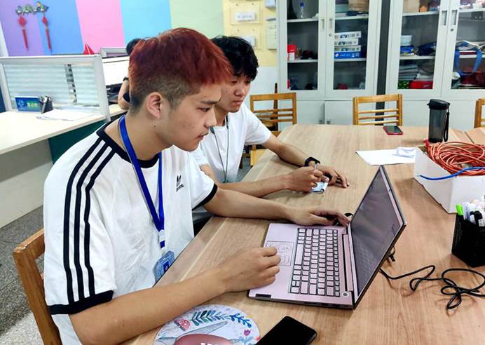 同学的电脑或是网络遇到问题,只要有需要,就可以看到志愿者的身影。他们中有的修笔记本电脑,有的负责公众号上面问题的维修,保障同学们准确的接收到信息。而修网线的同学是外修,主要负责出门给别人修电脑。这些志愿者就是网络技术工作室的成员们,他们用心用情用实际行动做好做实连接同学的“服务员”,他们拥有统筹协调工作学习的必备技能,有耐心细致处理问题的能力,使同学们电脑网络方面的困难一一化解。