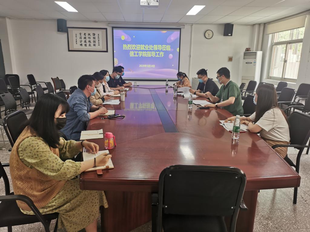 为进一步做好毕业生就业服务工作,提高公司2020届毕业生就业工作质量, 5月14日下午两点在资104会议室,就业处处长刘景向、科长冯科和许文华老师一行到太阳成集团tyc122cc指导就业工作。太阳成集团tyc122cc经理白鑫、书记王新平、行政秘书王崇、就业专员及全体毕业班辅导员出席本次会议,会议由行政秘书王崇主持。