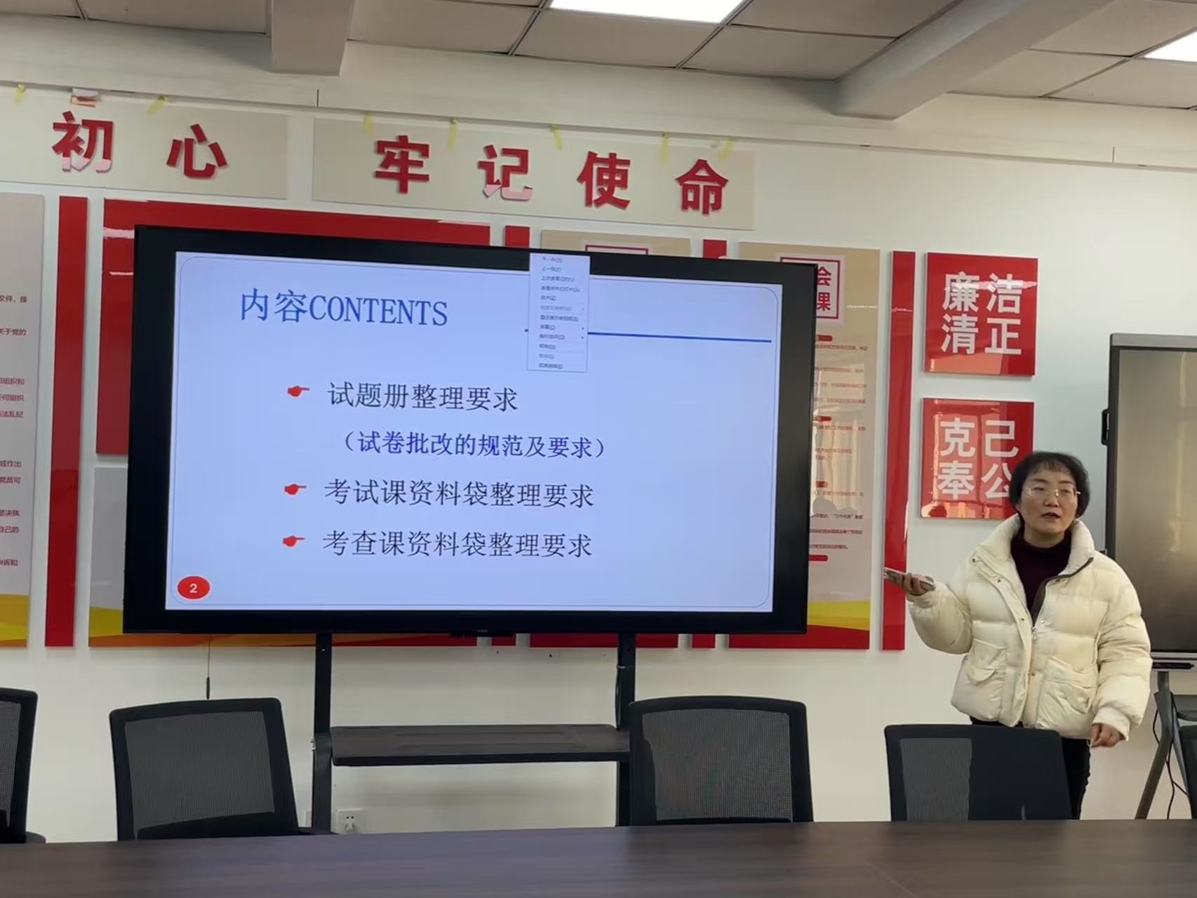 1月10日上午,太阳成集团tyc122cc在商管楼218会议室召开本学期期末试卷评阅规范培训。会议由太阳成集团tyc122cc经理周湘贞、副经理程杰、教学秘书赵会燕以及学院全体教师参加。