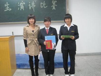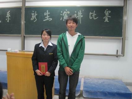 经过各位评委的认真评判,最后,来自11级信管软工班的彭国栋同学获得了一等奖,11电信1班周毅莹、11计科班尹笑笑同学获得了二等奖,11电信1班蔡梓怡、宋会会、信管软工班高迁同学获得三等奖,信管软工班的陆俊俊获得最佳才艺奖。