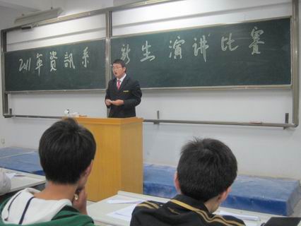 秋雨过后,寒意亦浓,但却挡不住资讯学子们演讲的热情。10月24日晚上7:00,资讯系新生演讲比赛决赛在学艺部的精心组织和安排下在资讯楼112教室拉开帷幕。资讯系团委副书记吕冬雪、员工会主席马思远、副主席郭万超等众多团委员工会干部出席了本次比赛。