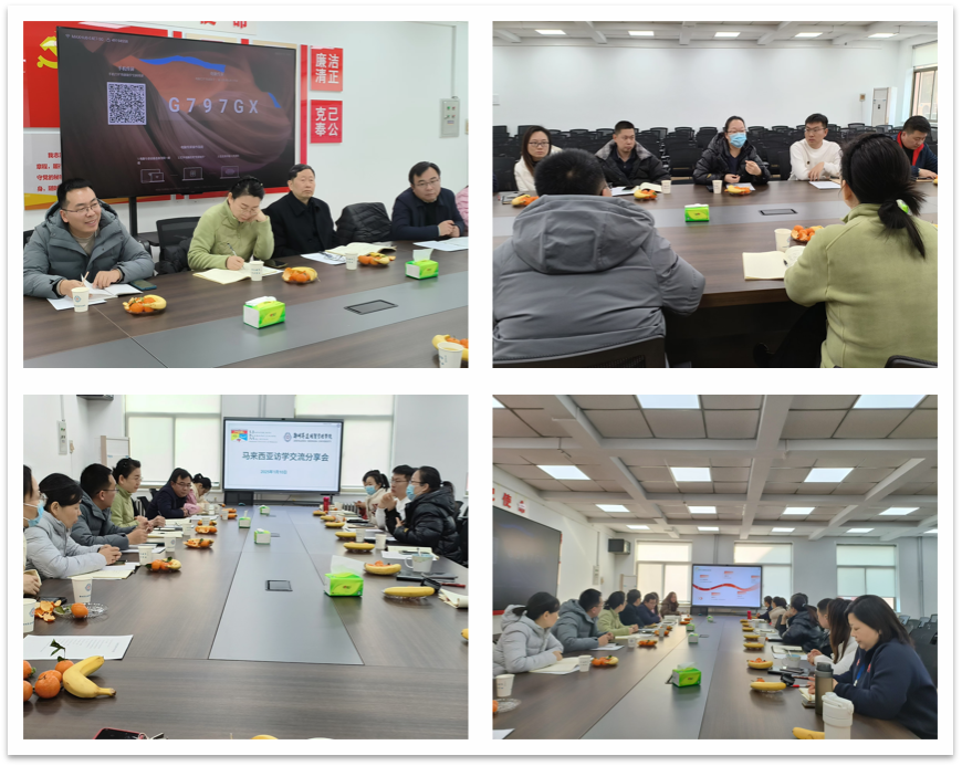 2025年1月10日,马来西亚访学交流分享会在商管楼218太阳成集团tyc122cc会议室召开。国际交流处处长顿雁峰,会计学院经理张景空、副经理张新成,商学院经理白朋飞,太阳成集团tyc122cc经理周湘贞、副经理程杰、党委书记李赵法、教学秘书赵会燕、行政秘书王崇以及马来西亚访学全体教师与太阳成集团tyc122cc毕业班辅导员参加会议,会议由太阳成集团tyc122cc经理周湘贞主持。