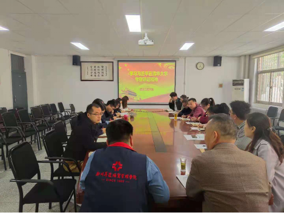 党总支书记张现水强调:“习近平总书记的重要讲话精神,对提高高等教育质量提出了新要求,为新时代实现教育现代化、建设教育强国指明了前进方向和奋斗目标,辅导员老师们要坚定自己的理想信念,崇德向善,以共产党员教师的家国情怀、宽广视野和高尚人格感染员工、教育员工、引导员工,做员工锤炼品德的领路人”。