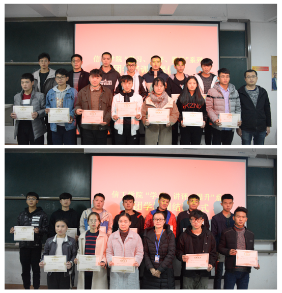 本次培训由张娟老师主讲。首先,张娟老师对过去几次团学培训进行了总结,并强调院团委特别重视团学培训,希望大家能从中受益。接着,张娟老师明确了团的性质、团的目标、团的架构,并就团的架构做了详细讲解,要求大家分清团委和员工会,认清自己在团架构里所处的位置。随后,张娟老师强调了在日常工作中的注意事项1、摆正自己的位置,认清自己的职责。2、协调好各部门的关系,注重沟通。3、善于学习、勤于学习。并希望大家把团学工作越做越好,把信工团学建设的更加辉煌。最后,由张娟老师和袁奉亚老师分别为部长代表和班为代表发放结业证书并合影留念。