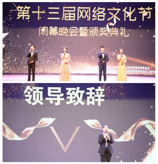 一支精彩火辣的舞蹈拉开了晚会帷幕,激发了全场的气氛。随后,公司党总支王新平书记致辞。王新平书记首先对精心组织、大力支持以及积极参与第十三届网络文化节的全体师生表示感谢,向获奖的同学表示热烈的祝贺,同时,她指出本次网络文化节主题鲜明,内容丰富、不仅丰富了校园文化生活,更增强了同学们的创新能力和专业实践能力;王书记希望同学们能够以网络文化节为契机,积极学习网络技能,不断提升文明素养,弘扬传播正能量。
