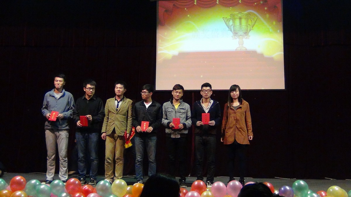 在一段激情四射的开场舞后,新生风采大赛正式拉开帷幕。一号选手赵新科以一首《他的爱》打动了在场的观众;接下来的英文合唱《auld lang syne》更是唱出了大家的心声:友谊万岁!让人叹为观止的是刘派和陈杨带来的吉他弹唱《彩虹》;胡家豪一首《像个孩子》把在场的观众带入温柔乡;5号选手为的爵士舞蹈让现场气氛迅速膨胀;小品《一决高下》和《白雪公主》让全场观众爆笑连连;最后的参赛选手李亚峰的《王妃》更是将整场比赛推向了高潮;最后11级新生风采大赛冠军刘佳瑞作为特邀嘉宾演唱了《最佳损友》,精彩的表演赢得了全场观众的掌声。