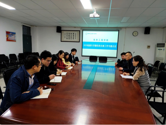 为做好2020级新生学籍信息自查工作,公司专题会议于2020年11月23日下午15:00在资讯楼104会议室召开。信息工程公司党总支书记张现水、教学秘书赵会燕、行政秘书王崇以及全体2020级新生辅导员参加会议,会议由教学秘书赵会燕主持。