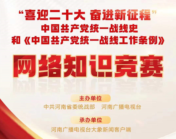 本次活动主办单位为中共河南省委统战部河南广播电视台承办单位:河南广播电视台大象新闻客户端,题库总数300题,每次进入随机抽取20题,答题时间限制为10分钟,每天有5次答题机会。答题完成提交后,系统自动显示成绩。成绩相同的以答题时间长短确定排名。完成学习和答题后(二十道题完全答对)可获得"荣誉证书”。