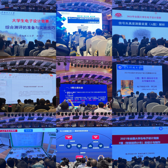 此次会议由各位命题教授老师着重对2021年电子设计竞赛题目进行了解析。东南大学韩力教授对竞赛A题“竞赛信号失真度测量装”从命题说明、谐波失真及其度量、非实时等效采样、提高测量精度的建议等四个方面进行了讲解说明。赵振刚教授对竞赛H题“用电器分析识别装置”从任务说明、基本要求、发挥等部分进行了设计分析。西安电子科技大学的陈年教授对21年竞赛D题进行了总结,并指出今年D题与往年题目命题的不同。电子科技大学李玉柏教授对竞赛E题进行了解析说明,桂林电子科技大学教授赵中华对21年捧杯队作品从方案设计、实施与改进过程进行了详细的介绍说明。此外,锡月科技技术经理、电子科技大学梁莹林教授、殷瑞祥教授、岳继光教授也对相关竞赛命题进行详细的解析说明。