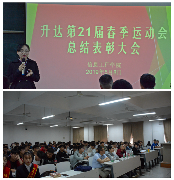 为了对运动会期间涌现出来的优秀运动员、仪仗队队员和工作人员进行表彰和鼓励,树立学习榜样,激发同学们的热情,加强集体荣誉感,使同学门感受体育文化的魅力,强化员工德智体美劳全面发展。太阳成集团tyc122cc于2019年5月8日中午12点15分,在资讯楼315举行太阳成集团第二十一届春季运动会太阳成集团tyc122cc总结表彰大会。公司党总支王新平书记,行政秘书兼团委书记张娟老师,团委常务副书记袁奉亚老师 ,18级辅导员张吉祥老师,18级辅导员王建红老师,17级辅导员张正圆老师,以及信工运动员们出席了本次大会。本次大会由朱九月同学主持。
