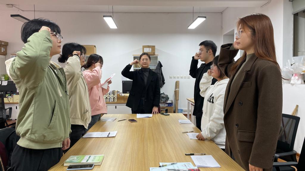 会议第二项,由预备党员周玉兰同志带领全体党员及新接收的预备党员,宣读入党誓词。