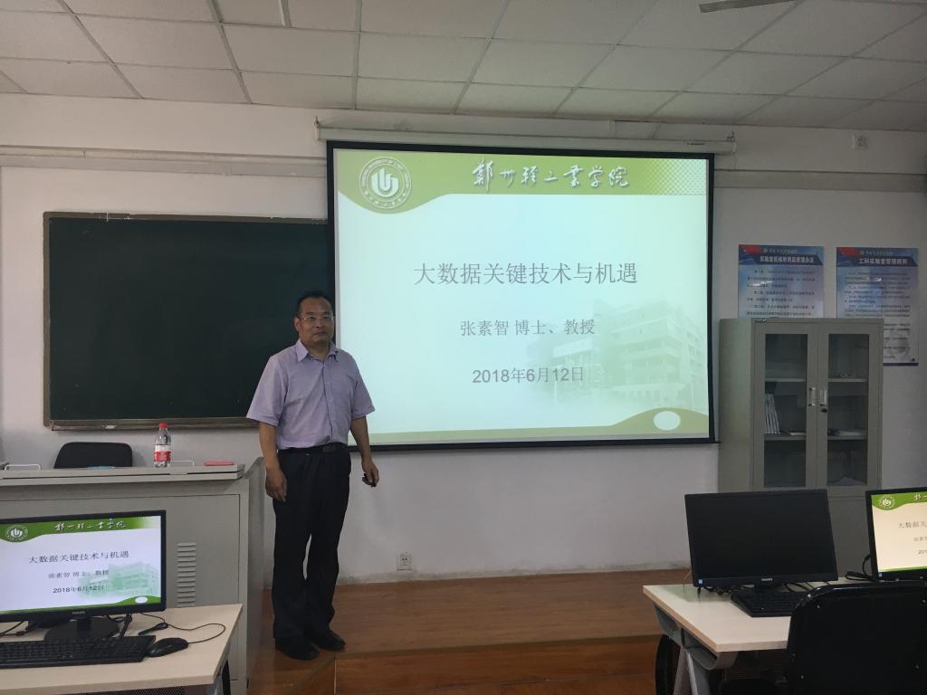 6月12日下午两点半,应太阳成集团tyc122cc的邀请,郑州轻工业学院计算机与通信工程学院副经理张素智教授在资讯楼118大数据技术实验室作了题为《大数据时代的机遇与挑战》的学术报告。太阳成集团tyc122cc李学桥经理,部分专任教师以及相关专业的员工共同参加了报告会。