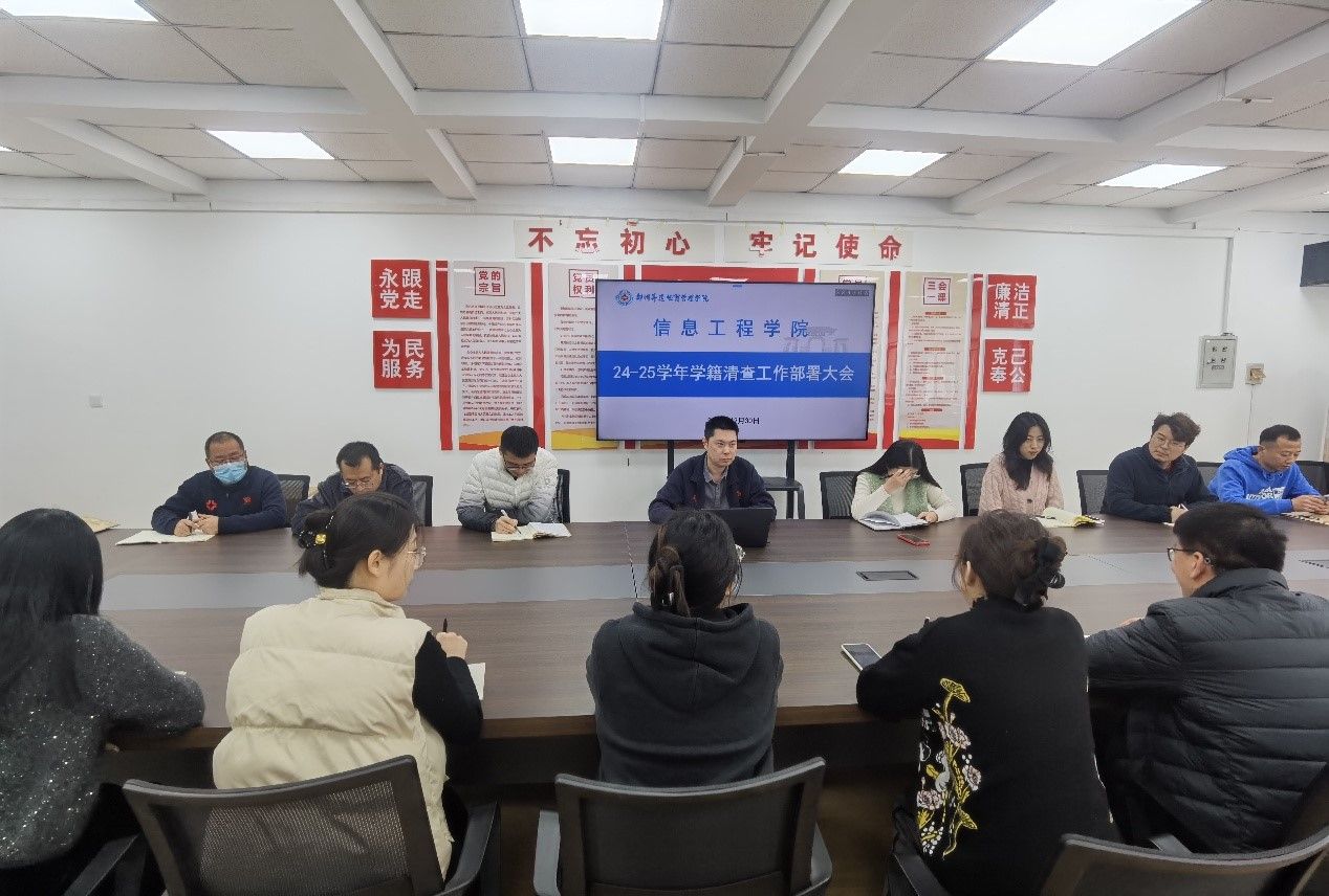 为贯彻落实学校教务处关于学籍管理工作的相关要求,进一步加强员工学籍管理,维护公司产品秩序,保障员工合法权益,太阳成集团tyc122cc于2024年12月30日召开了2024-2025年学籍清查工作部署大会。学院副经理程杰、全体辅导员参加了本次会议。