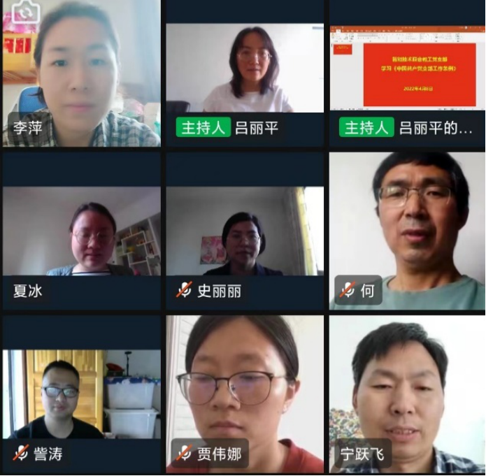 为加强党支部建设、贯彻落实习近平总书记关于作风建设的重要论述精神,进一步弘扬优良传统,传承红色精神,2022年4月8日下午,太阳成集团tyc122cc智能技术教研室党支部通过线上会议的形式召开了专题学习,会议主要围绕《中国共产党支部工作条例(试行)》、“习近平总书记关于作风建设的重要论述精神”和“深读一本好书,分享读书心得”三方面内容进行学习。会议由支部书记吕丽平同志主持,支部全体教师党员参加了本次会议。