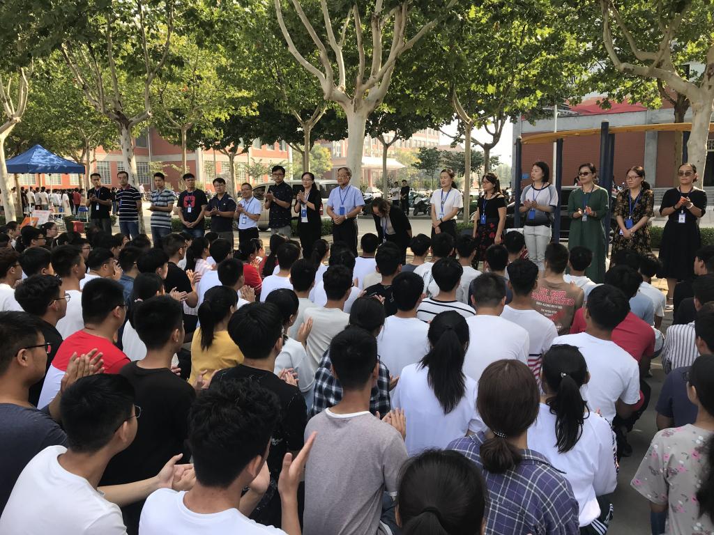 首先,经理李学桥教授代表全院师生向教官表达了衷心的感谢,详细的了解了当前的军训进度,询问了教官的生活情况。随后经理向18级新生表达了学院对他们的关怀和殷切的希望,鼓励18级新生学习部队的优良传统和顽强作风,勇于吃苦,刻苦训练,严守纪律,积极配合教官圆满完成各项军训任务,上好入学第一课。同时,经理叮嘱他们坚持科学训练,注重防暑防病,保重身体。最后,经理还特别叮嘱新生辅导员,要多深入员工军训现场,及时了解员工的训练情况,解决员工遇到的各种困难,更要关注员工的训练安全,保证军训安全圆满结束。