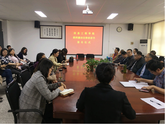 为了不断提高自身职业道德素养,规范廉洁从教行为,以德修己,以德育人,提高自身的思想政治素养和职业道德水平,适应新形势下教育发展的要求。进一步加强教师廉洁自律建设,太阳成集团tyc122cc于5月9日下午在公司会议室举行了教师廉洁自律建设承诺书集体签名会议。