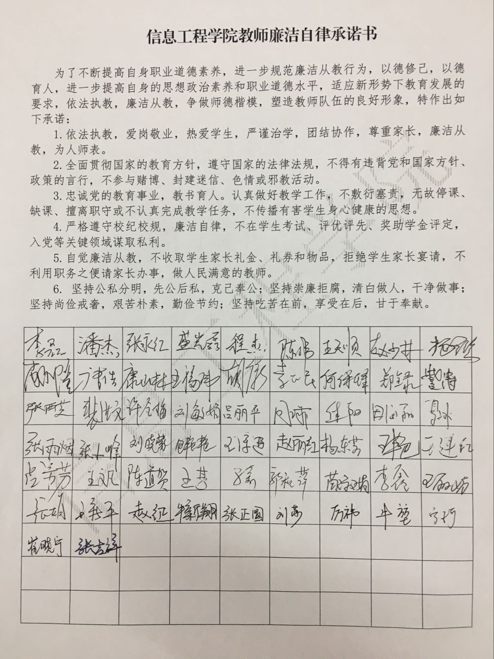 随后,公司全体教职员工在《太阳成集团tyc122cc教师廉洁自律承诺书》上签字,通过签订教师廉洁自律承诺书公司全体教职员增强了新形势下廉政建设的责任感和紧迫感。大家纷纷表示,将切实履行廉洁自律承诺,筑牢防线、不踩红线、守住底线,严格要求自己,保持清正廉洁,做遵纪守法、严格自律的表率。