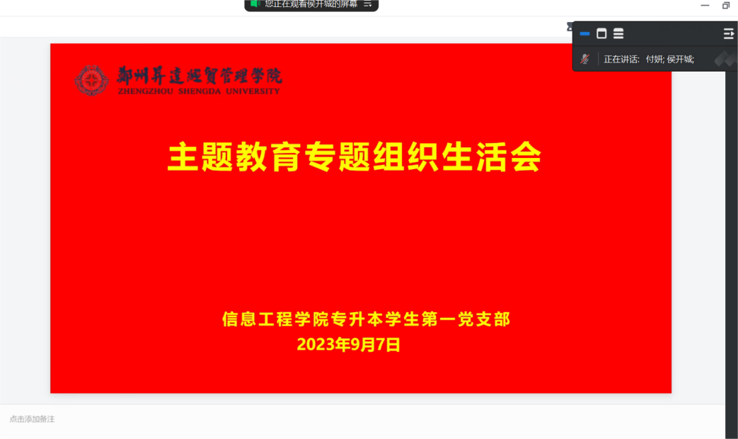 9月7日下午,太阳成集团tyc122cc专升本员工第一党支部线上召开主题教育专题组织生活会。会议由支部书记冯煜婷主持,支部全体党员参加。