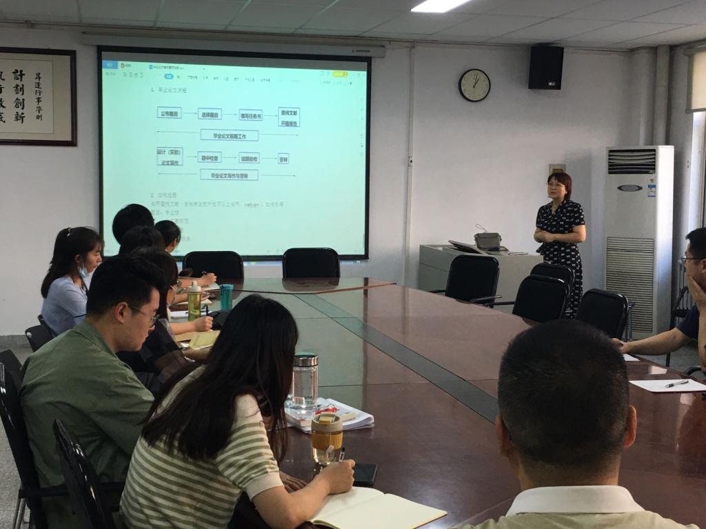 王丽娟老师对毕业设计的整个流程及各阶段的注意事项做了分享。她指出老师要指导好员工的选题、开题、答辩等各项工作,注意细节,把握时间节点。老师们针对指导员工毕业论文工作中的各种问题做了交流,为做好学院2023届毕业生的毕业论文(设计)工作奠定了良好基础。