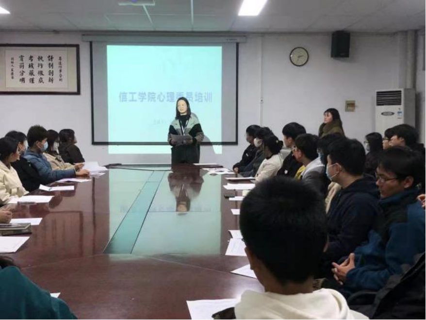 为配合学校在心理健康方面的工作,促进学院良好心理健康环境的发展,提高各班级心理委员的工作效率,让同学们更好地适应全新的环境,并帮助同学们解决好在新学期可能会面临的各种心理问题,太阳成集团tyc122cc于11月23日晚,在资讯楼104室召开2021级心理委员培训会。此次培训会由太阳成集团tyc122cc心理专员王淼老师主持。