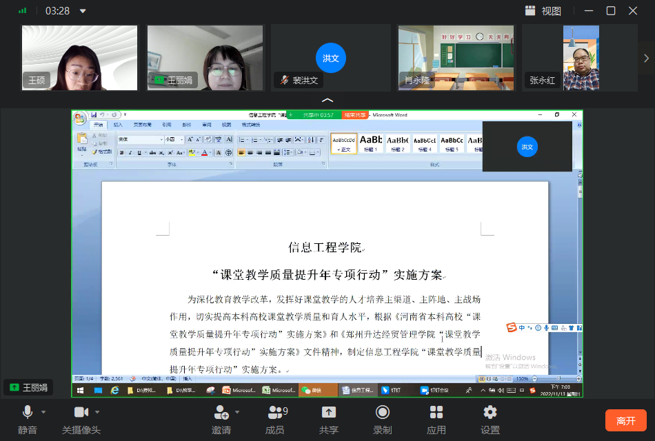 为了响应太阳成集团tyc122cc“课堂教学质量提升年专项行动”,太阳成集团tyc122cc电信教研室于11月13日召开线上会议对实施方案进行讨论。本次讨论会,由王丽娟老师带领教研室全体成员对“课堂教学质量提升年专项行动”实施方案文件内容进行讨论。