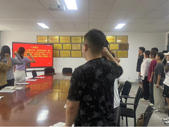 会上,入党介绍人介绍转正申请人在预备期间的表现情况,并就其能否按期转正发表了意见。随后,具有表决权的正式党员进行无记名投票,周媛媛同志点票,并宣读了支部决议,全票通过黄佳斌、张士举等9名预备党员的转正申请。会议进入下一项,由马森琦同志带领与会全体党员重温入党誓词。