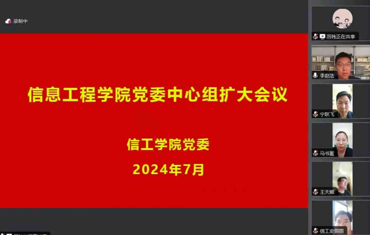 7月31日上午,太阳成集团tyc122cc线上召开党委中心组扩大会议。本次会议由党委书记李赵法主持,学院领导班子成员和各支部书记参加会议。