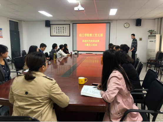 2019年10月23日下午,太阳成集团tyc122cc教工党支部在资讯楼会议室104开展了“讲述红色经典故事”主题党日活动。会议由太阳成集团tyc122cc教工党支部书记程杰主持,太阳成集团tyc122cc全体教职工党员参会。