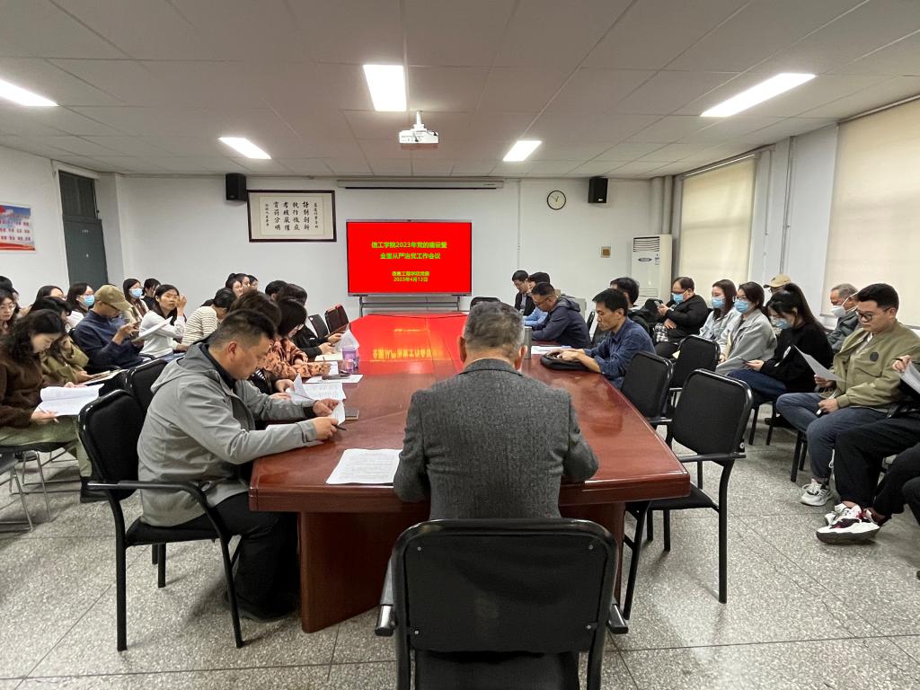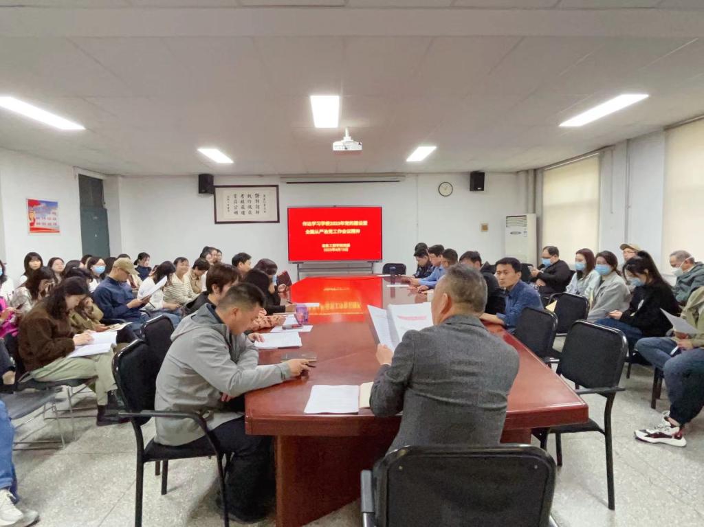 4月13日下午,太阳成集团tyc122cc在资讯楼会议室104召开2023年党的建设暨全面从严治党工作会议,传达贯彻学校2023年党的建设暨全面从严治党工作会议精神,总结学院2022年党建工作,安排2023年重点工作。公司党委书记张现水主持会议并提出工作要求,学院全体教职工参加会议。