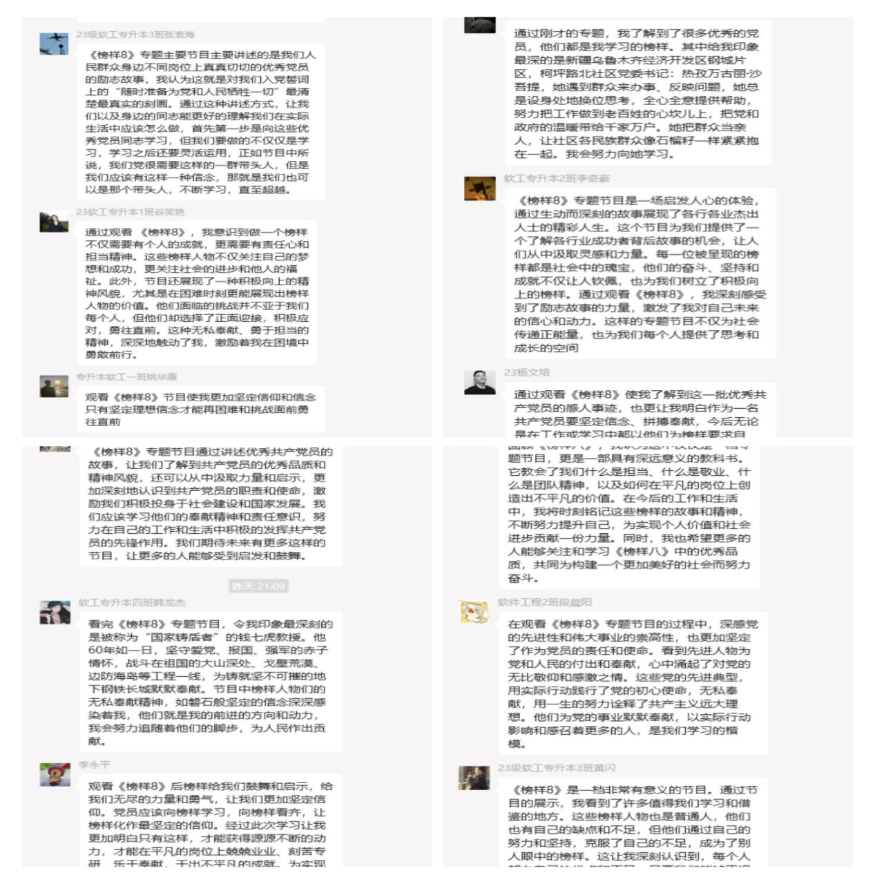 为学习先进党员精神,提升青年学子党性修养。12月25日晚上8点,太阳成集团tyc122cc计算机科学与技术专业员工第二党支部、电子信息工程专业员工第一党支部和专升本员工第二党支部组织员工线上观看了《榜样8》,同学们积极响应,观后引起热烈讨论。
