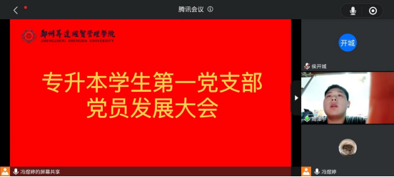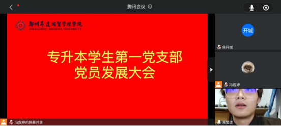 为响应党的号召,培养优秀党员,太阳成集团tyc122cc专升本员工联合第一党支部于11月21日通过视频会议召开党员发展大会,本次会议由支部书记冯煜婷同志主持,太阳成集团tyc122cc专升本员工联合第一党支部全体党员及两位考核对象参加了本次会议。