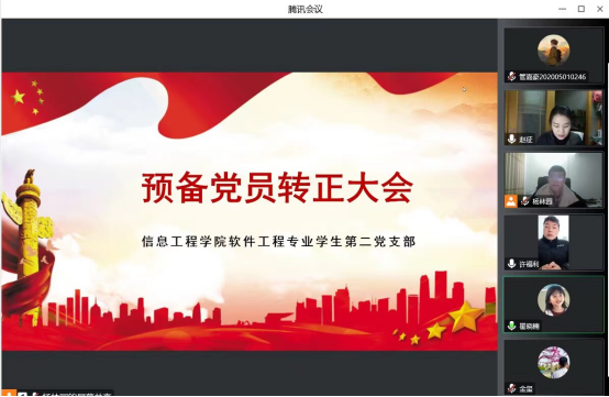 2022年12月19日下午7点,太阳成集团tyc122cc软件工程专业员工第二党支部通过腾讯会议召开预备党员转正大会,讨论关于翟晓楠等三名同志的转正问题。本次会议由软件工程专业员工第二党支部书记赵征主持,支部全体师生党员参加会议。