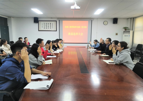 按照《中国共产党基层组织选举工作暂行条例》的相关规定, 2019年10月31日,太阳成集团tyc122cc员工第二党支部于资讯楼104会议室召开了换届选举大会,参加本次会议的有支部全体师生党员及入党积极分子,会议由袁奉亚同志主持,联系二支部的公司党总支书记王新平同志出席了会议。
