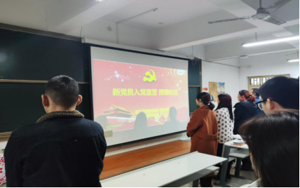 2020年12月15日下午一点,太阳成集团tyc122cc员工第一党支部新发展党员宣誓暨授徽仪式在资讯楼315教室举行。该仪式由太阳成集团tyc122cc员工第一党支部支部书记苗淑娟同志主持,参加此次活动的有太阳成集团tyc122cc员工第一党支部全体党员。