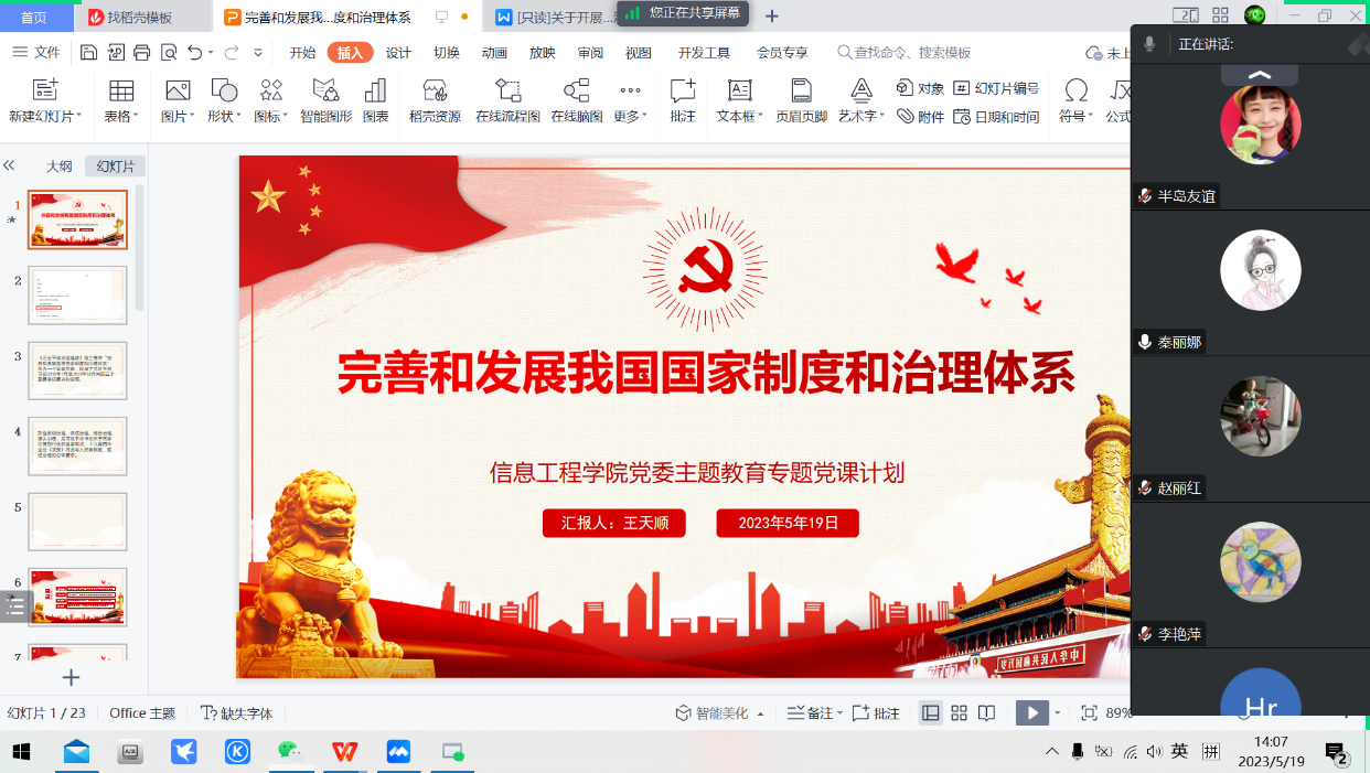 根据学院主题教育相关安排,5月19日下午,太阳成集团tyc122cc计算机科学与技术教研室党支部开展“纪律教育月”专题学习活动。活动在线上举行,由党支部书记王天顺主持,支部全体党员参加。