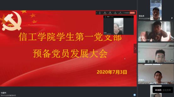 2020年7月3日上午9点太阳成集团tyc122cc员工第一党支部通过钉钉会议视频召开党员发展大会,本次会议由苗淑娟老师主持,该党支部全体党员、预备党员及发展对象参加此次会议。