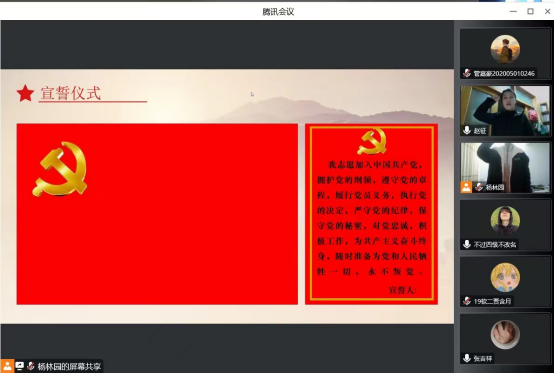 最后党支部书记赵征老师对新党员表示祝贺,并对新党员提出要求:一是要加强学习,注重修养,要注意自身政治理论的学习;二是要牢记组织上入党一生一次,思想上入党一生一世,防止入党前积极,入党后放松的状况;三是要严于律己,牢记入党初心,在学习工作中从点滴做起,发挥好党员的先锋模范作用。