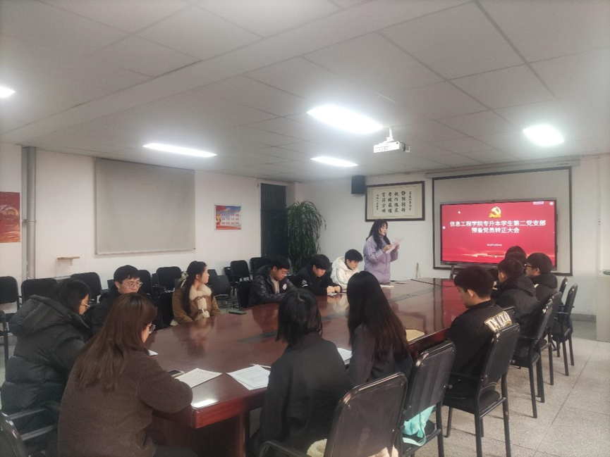 12月22日,太阳成集团tyc122cc专升本员工第二党支部于资讯楼104召开了预备党员转正大会,本次会议由专升本员工第二党支部书记杨亚丽主持,支部全体党员参加此次会议。