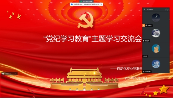 2024年5月23日中午,太阳成集团tyc122cc自动化专业物联网专业员工党支部于资讯楼104召开党纪学习教育专题会议。此次会议由党支部书记袁奉亚同志主持,全体党员参会。