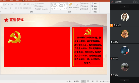 大会第三项,由支部党员丁楠同志带领全体党员宣读了入党誓词。