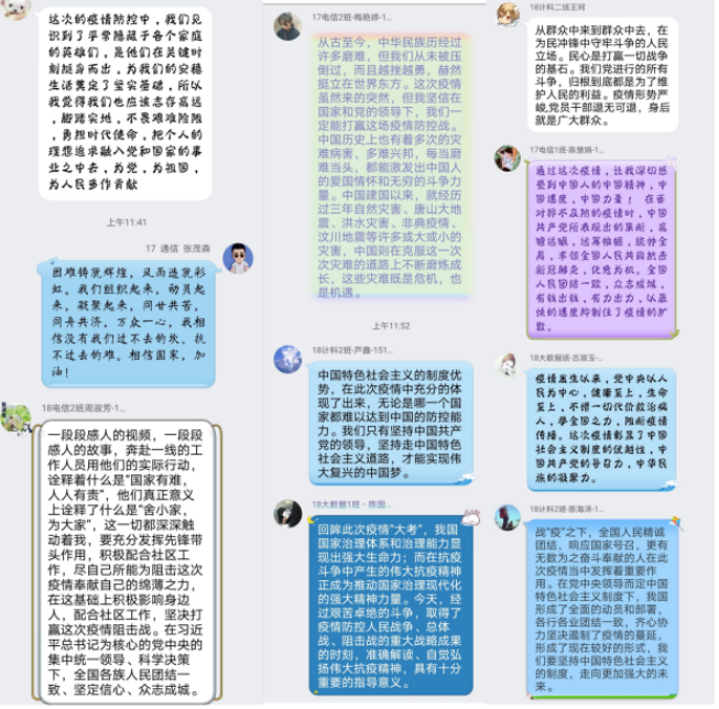 在通过线上形式观看“党旗飘扬,筑牢红色防火墙”主题党课后,大家深刻感受到共产党领导的优越性。疫情一触即发,在第一时间冲上前主动请缨的是共产党员,他们敢于斗争,敢于胜利,齐心协力打赢了疫情保卫战。大家纷纷表示,要认真学习和领会党课精神,以战“疫”中涌现出来的先进模范党员为榜样,充分发挥党员先锋模范作用,牢牢筑起校园红色防火墙,让党旗在校园疫情防控阻击战中高高飘扬。
