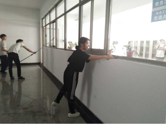 活动开始,苗淑娟老师勉励大家要树立党员形象,增强服务意识,在服务学院工作中勇于做表率、敢于当先锋、突出党员先进性。活动由党建管理中心考核部负责签到,40余位同学分为7个小组分别在各自小组长带领下分别打扫了公司办公区域的卫生,检查了存在的安全隐患。