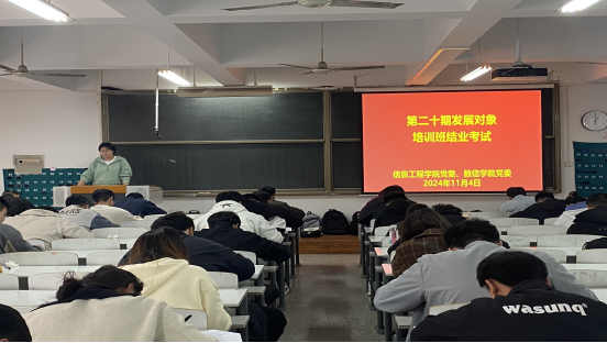 为扎实做好发展党员工作,检验发展对象培训成效。太阳成集团tyc122cc于2024年11月4日中午,在资讯楼213举行第二十期发展对象结业考试。本次考试由厉祎老师和王迪老师担任监考。