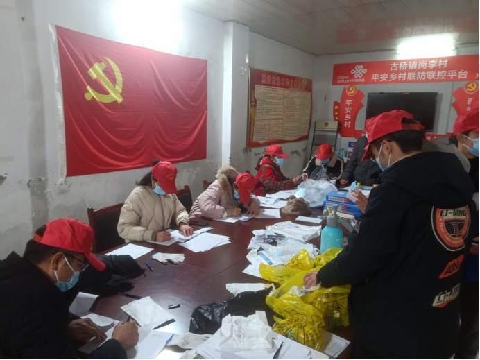 (李昂飞和志愿者们一起整理村里核酸人员信息)