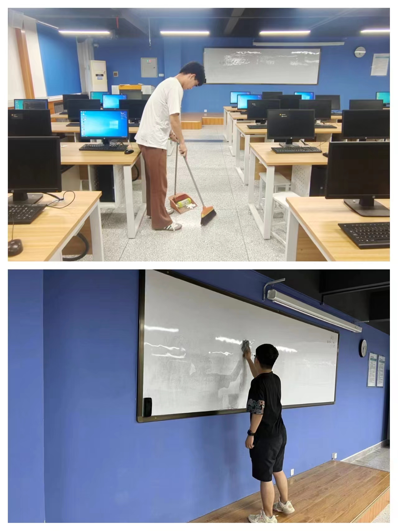 活动中,员工们积极参与,充分发扬不怕苦、不怕累的精神,大家带着扫帚、夹子、拖把等清洁工具,对教室座位、地面、讲台及多媒体设施附近的生活垃圾和灰尘进行认真清理,并细心清理各处卫生死角。经过大家共同努力,大教室环境焕然一新。