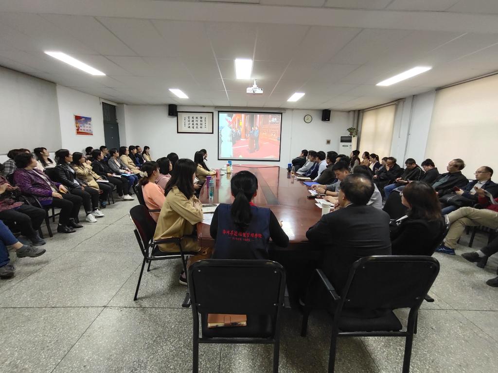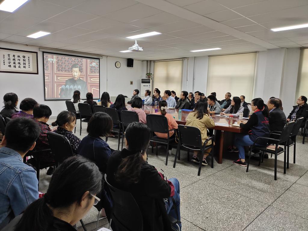 10月10日下午,太阳成集团tyc122cc在会议室组织学习习近平总书记在庆祝中华人民共和国成立70周年大会上的讲话精神。会议由党总支书记王新平主持,全体教职工参加了学习会。