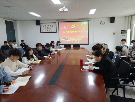 随后,会议进行了民主评议党员工作。书记带头开展批评和自我批评,从理想信念、党性修养、宗旨意识、纪律观念、廉洁自律等方面剖析根源,认真查摆,提出具体整改措施。随后,支部班子其他成员和其他师生党员本着对自己、对同志、对组织高度负责的态度,紧密联系自己的思想和工作实际,把自己摆进去、把思想和工作摆进去,依次严肃认真地开展了面对面、一对一的批评和自我批评,实事求是的查找思想作风中的不足,深刻剖析了产生问题的思想根源,查找工作实践中的差距,进一步明确了努力目标和整改措施。相互批评既辣味十足,又团结有序,真正做到了讲党性不讲私情、讲真理不讲面子,严肃认真的提意见,满怀热情的帮同志,在红脸出汗的过程中达到了“团结—批评—团结”的目的。